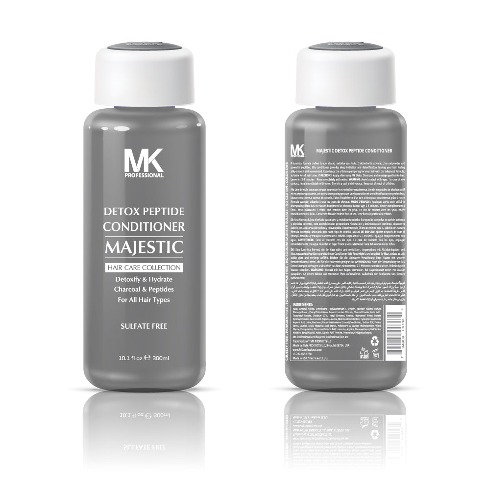 Majestic Detox Peptide Conditioner is a luxurious formula crafted to nourish and revitalize your hair. Enriched with activated charcoal powder and powerful peptides, this conditioner provides deep hydration and detoxification, leaving your hair feeling soft and rejuvenated. An advanced formula, delivering brilliance to the hair. Suitable for all hair types.